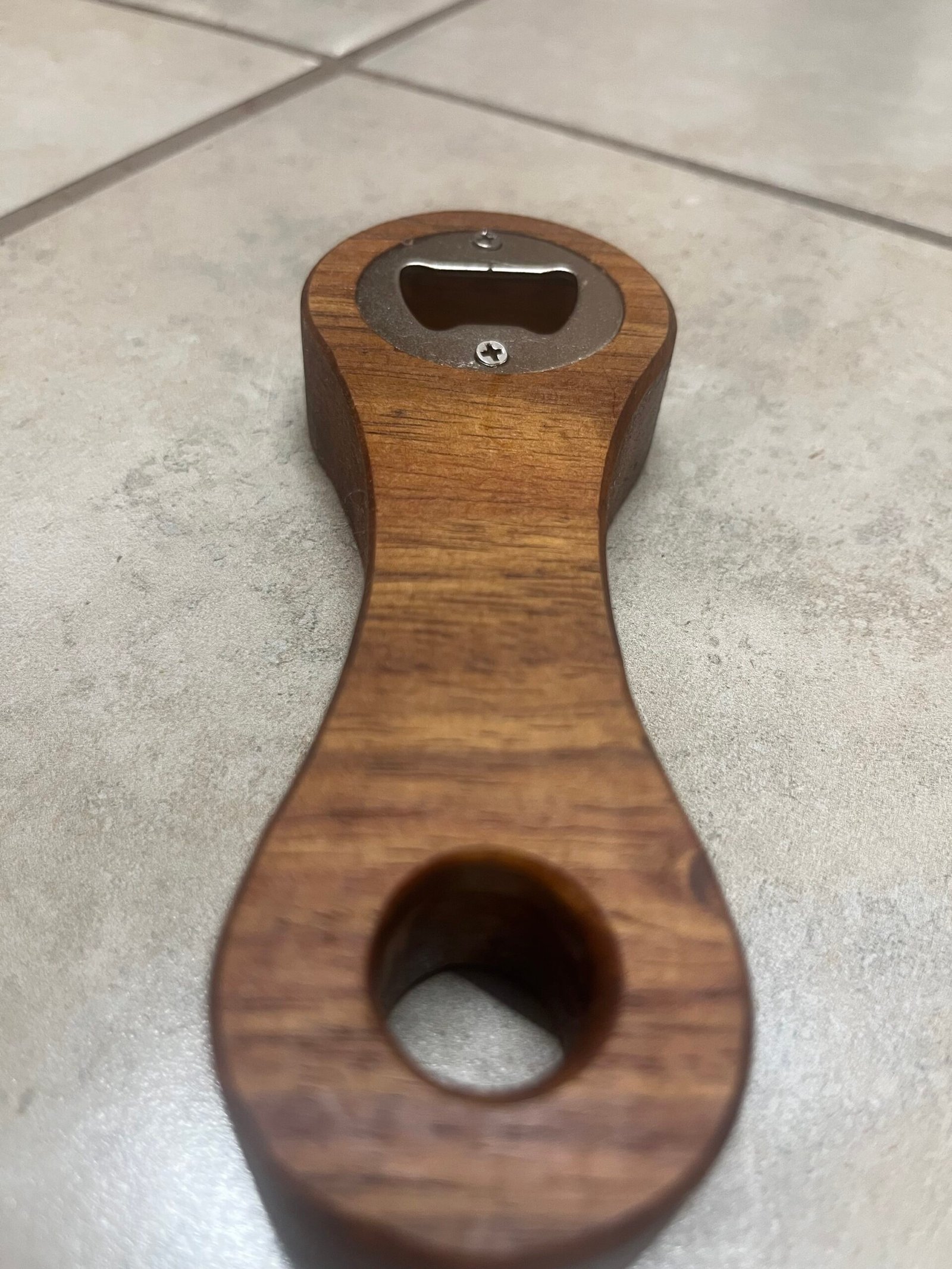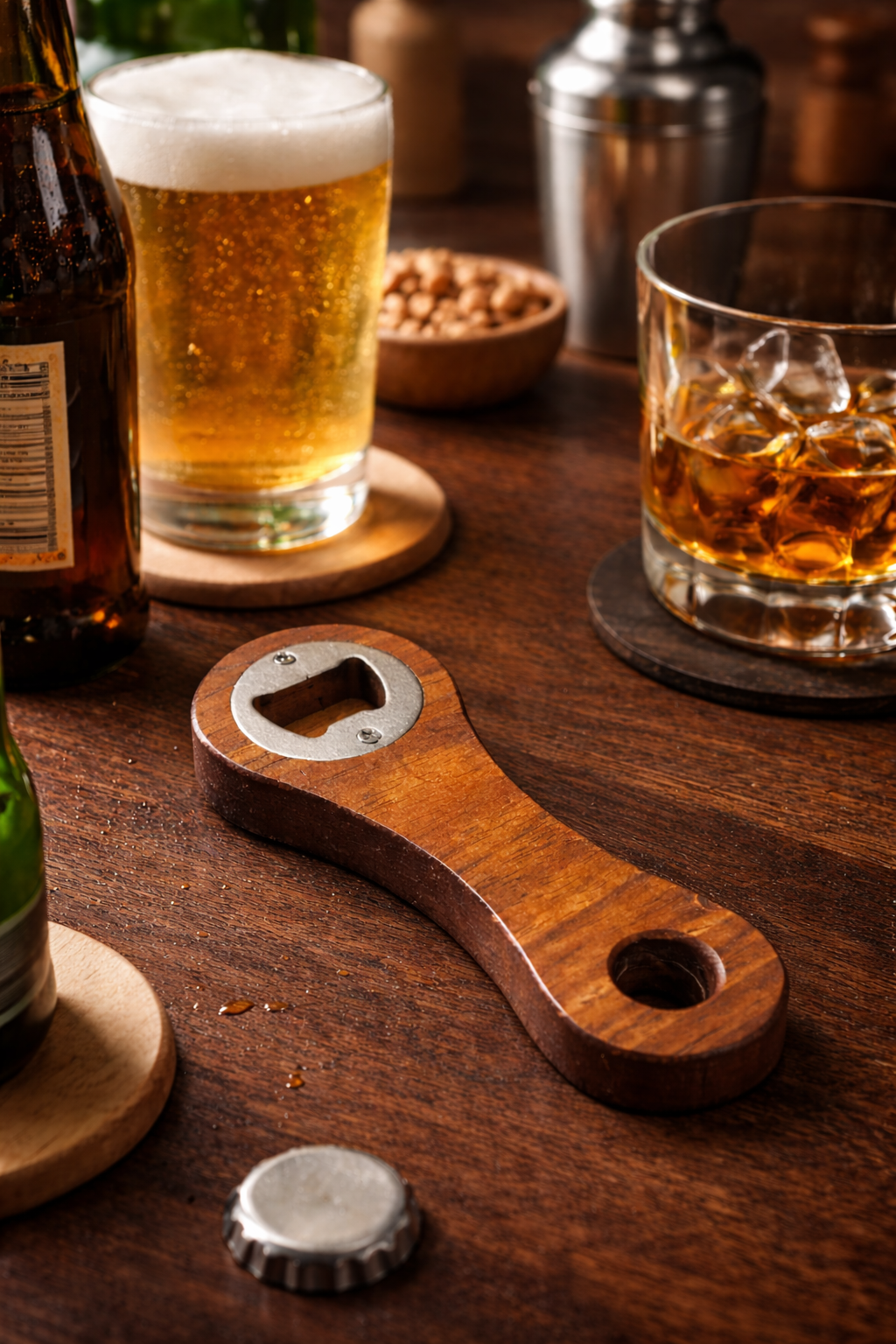 Crafted from solid Kiaat hardwood with a durable stainless steel opener. A stylish, practical accessory for any home bar or braai.