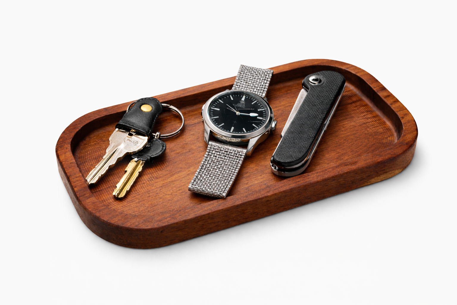 A kiaat catch-all tray for everyday items at home or at your desk