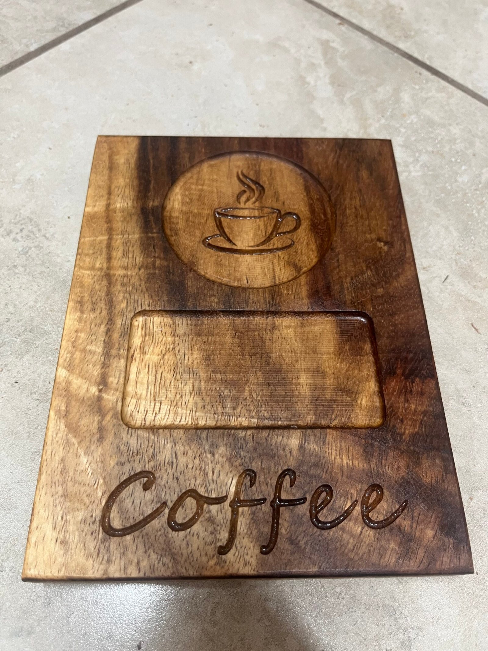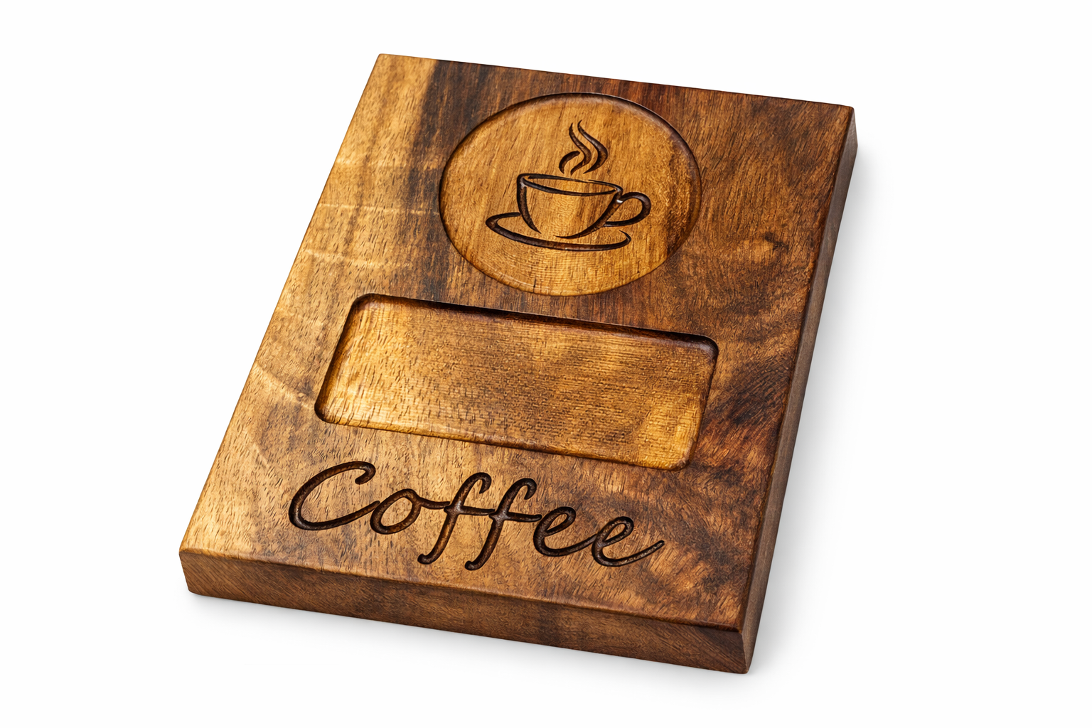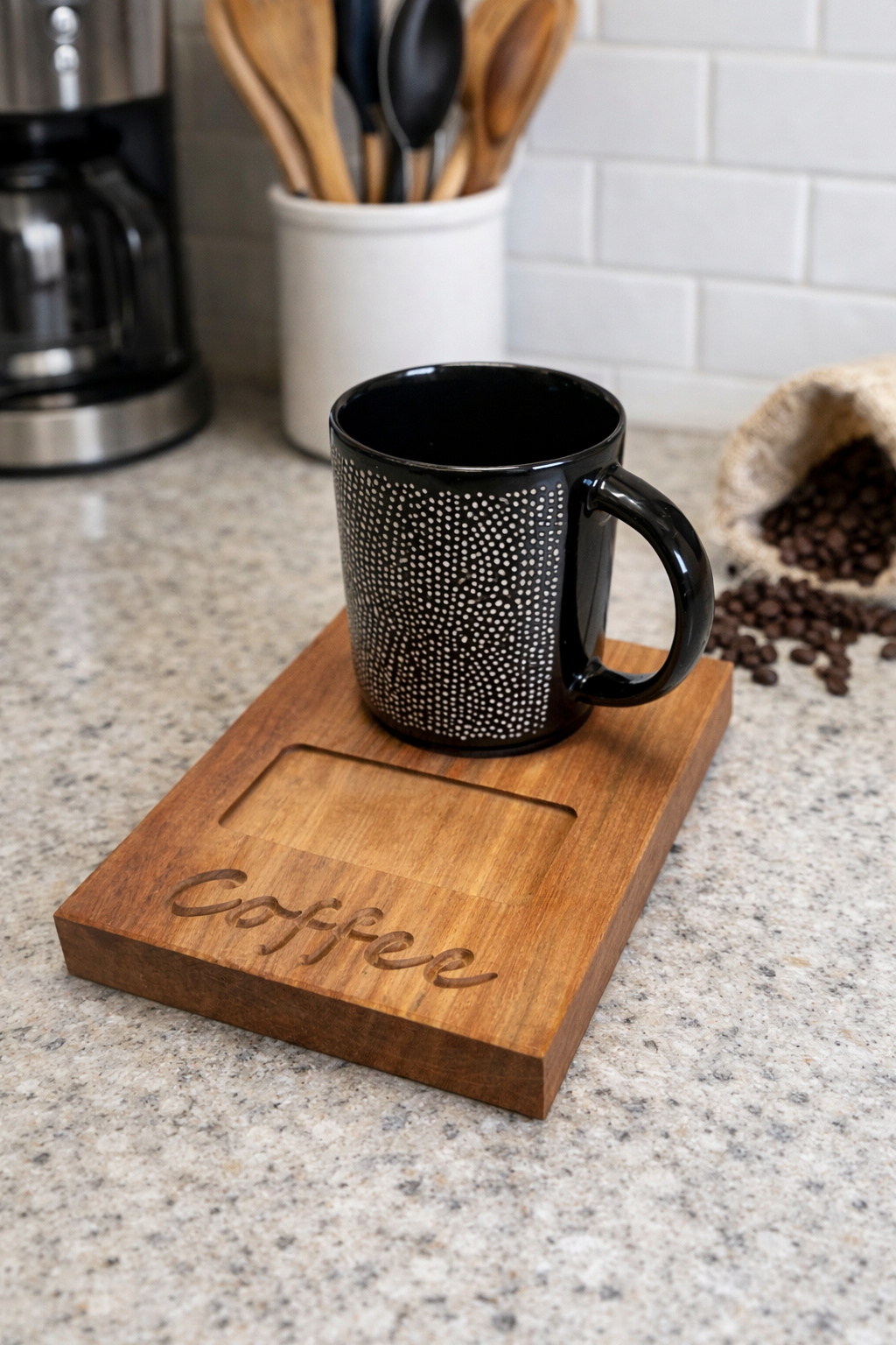 This coffee station tray has been designed to hold a coffee cup, biscuit, rusk or spoon.