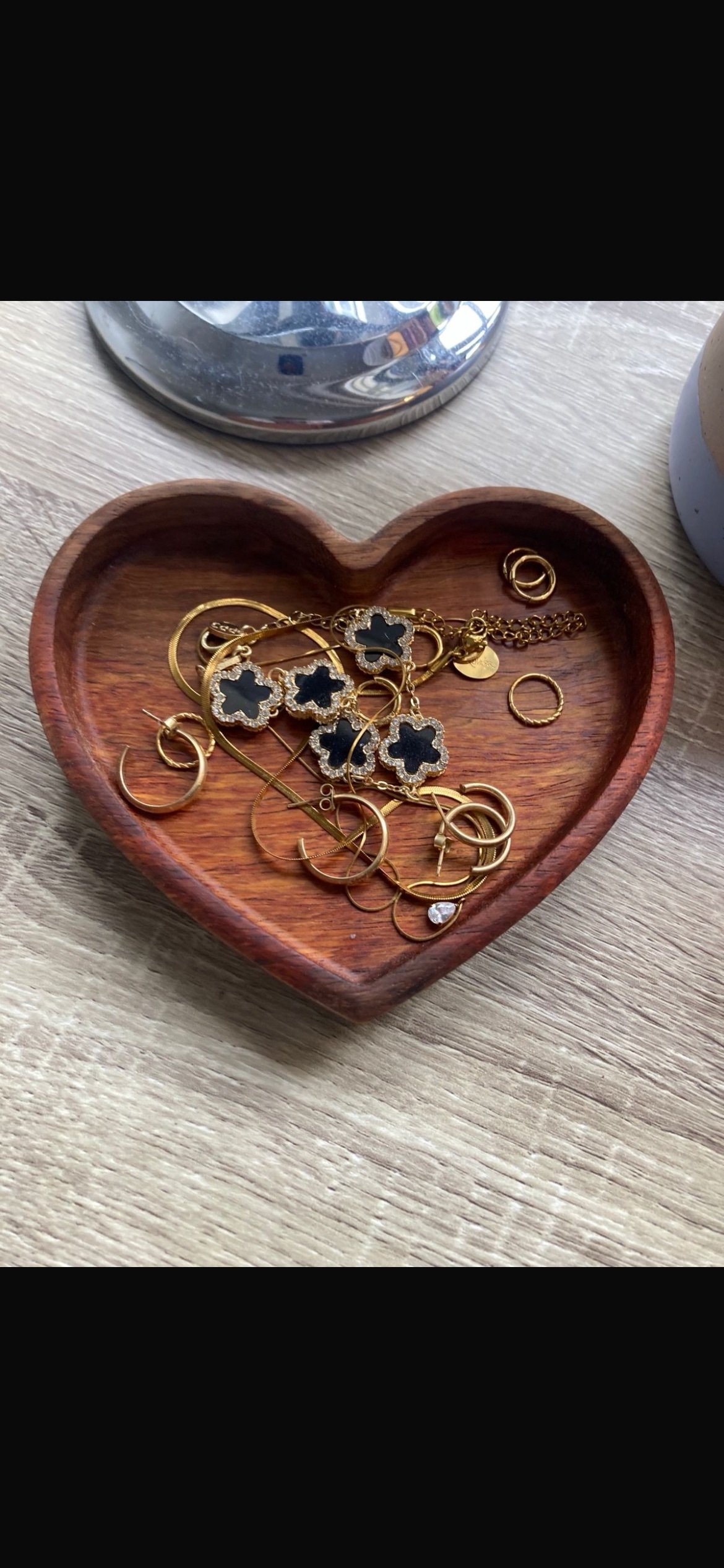 A teak catch-all tray for jewelry or everyday items at home or at your desk
